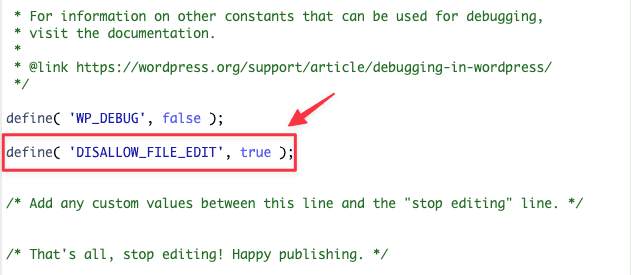 define( 'DISALLOW_FILE_EDIT', true );