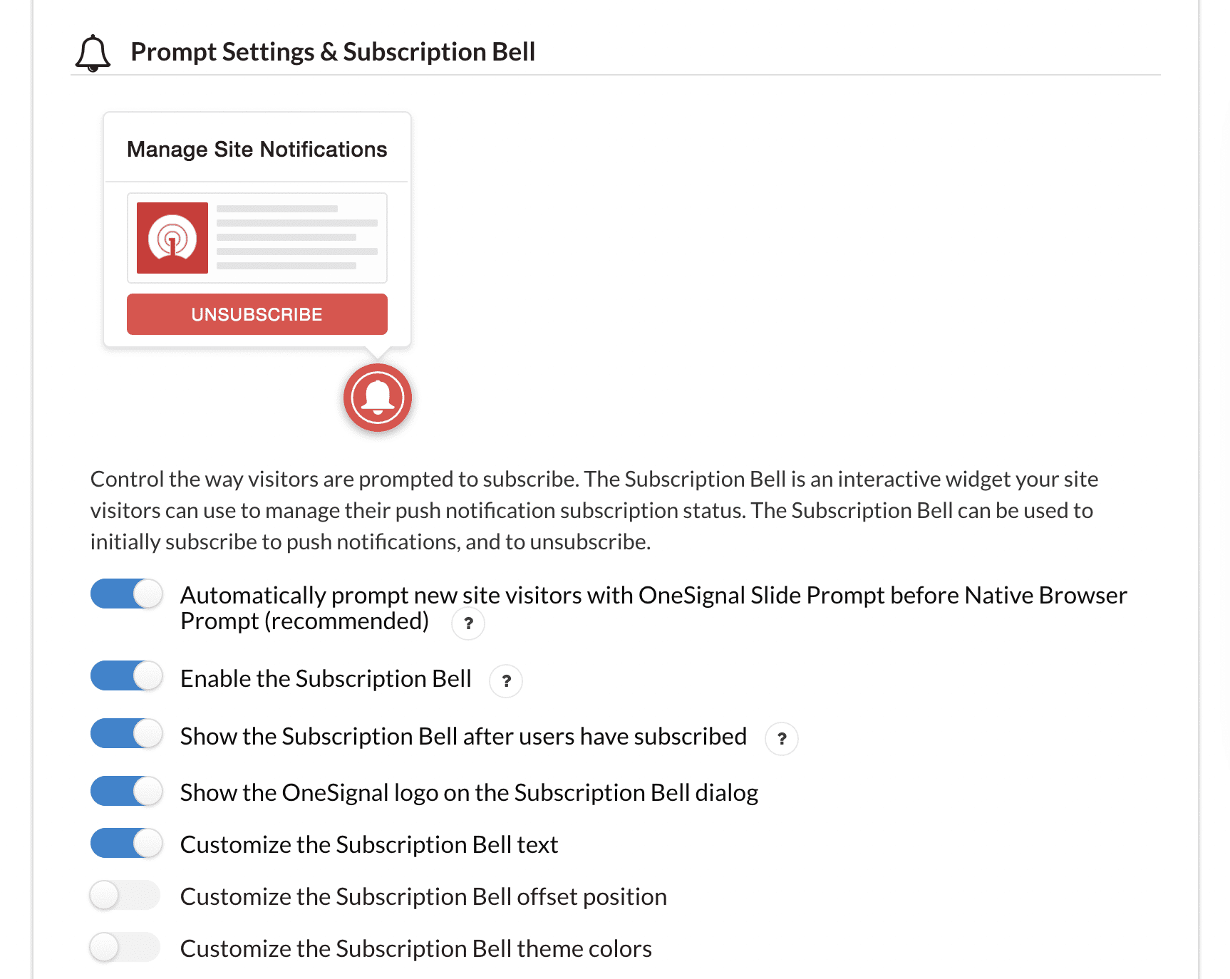 Kéo xuống gần cuối trang thì các bạn sẽ thấy mục Welcome Notification Settings. Mặc định, OneSignal sẽ gửi tin nhắn ‘chào mừng’ bằng push notification cho bất cứ người dùng nào đăng ký trên website của bạn. Trong phần này, bạn có thể vô hiệu hoặc tùy chỉnh thông báo đó: