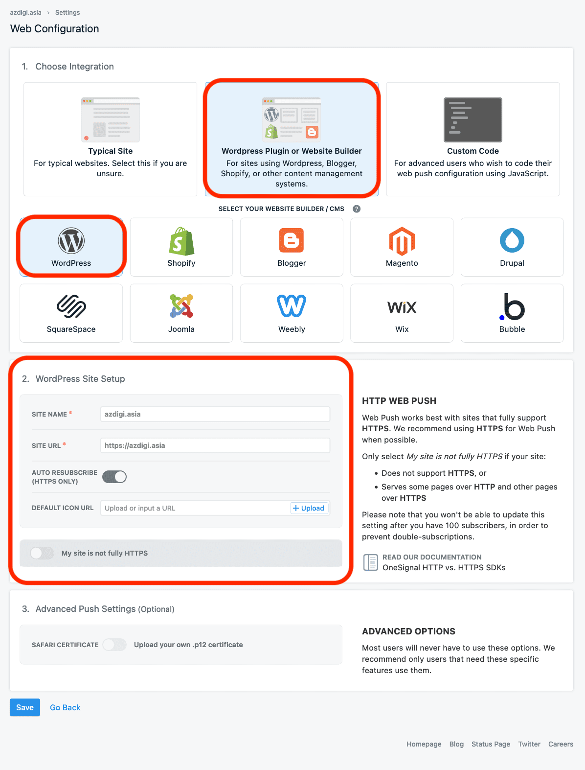 Để tạo thông báo đẩy cho WordPress với plugin OneSignal thì chúng ta sẽ đi qua hai bước sau.