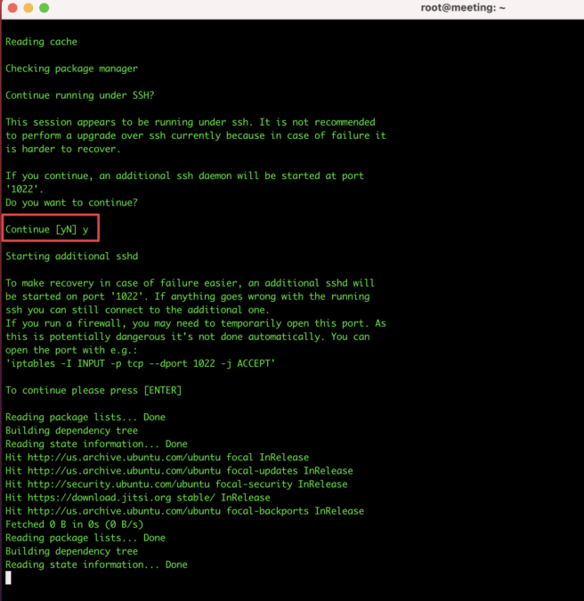 Chọn tiếp Y/Yes khi được hỏi và thời gian cập nhật sẽ mất khá lâu. Và trong thời gian nâng cấp bạn không tắt cửa sổ SSH cho đến khi tiến trình hoàn tất.