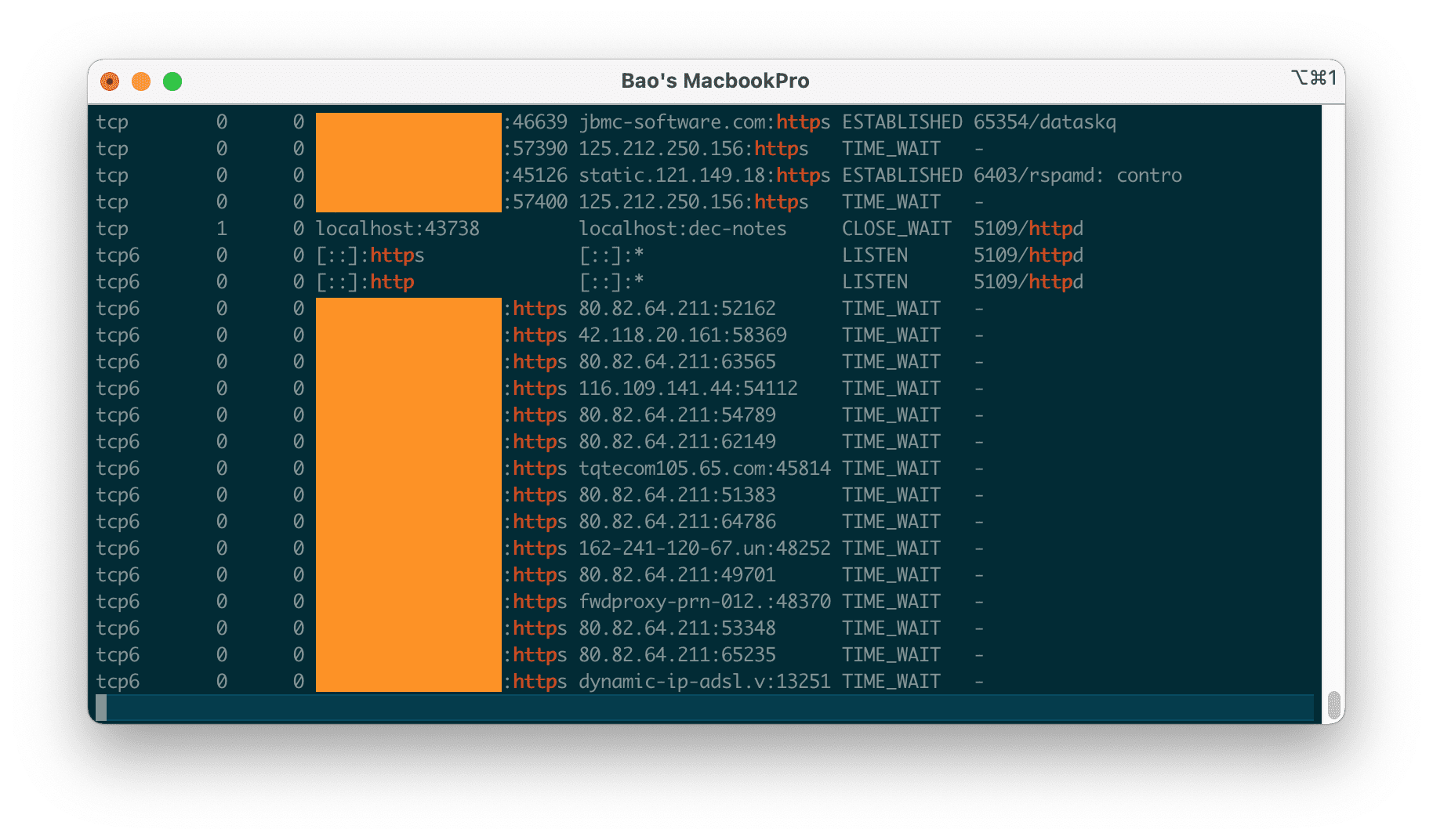 Tìm xem có bao nhiêu chương trình nghe đang chạy trên một cổng. Ở đây mình sẽ tìm trên cổng http/https.
