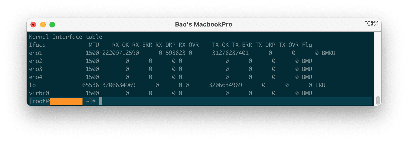 Hiển thị bảng giao diện Kernel, tương tự như lệnh ifconfig với lệnh netstat -ie.