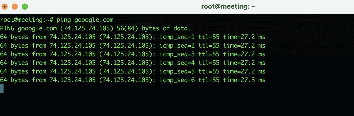 Để kiểm tra thiết bị đã cấu hình Network thành công chưa mình sẽ mở của sổ Terminal và PING ra ngoài. Ở đây mình PING 8.8.8.8 và kết quả đã nhận thành công.