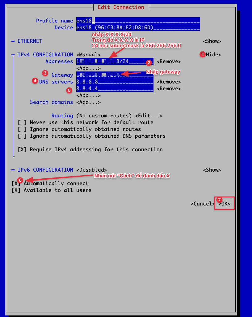 Bước 4: Cấu Hình Địa Chỉ IP Tĩnh