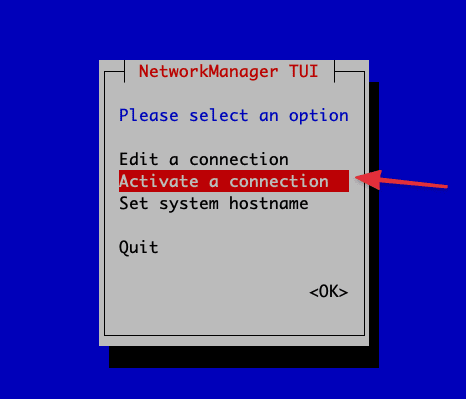 Các bạn chạy lệnh sau để mở cửa sổ giao diện của NetworkManager.