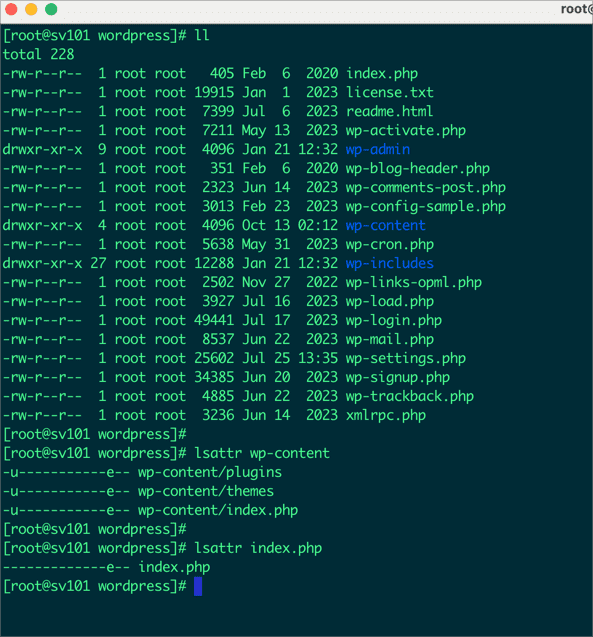 lsattr index.php lsattr wp-content