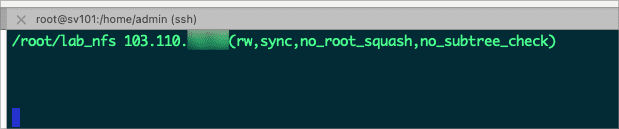 /root/lab_nfs 103.110.2.2(rw,sync,no_root_squash,no_subtree_check)