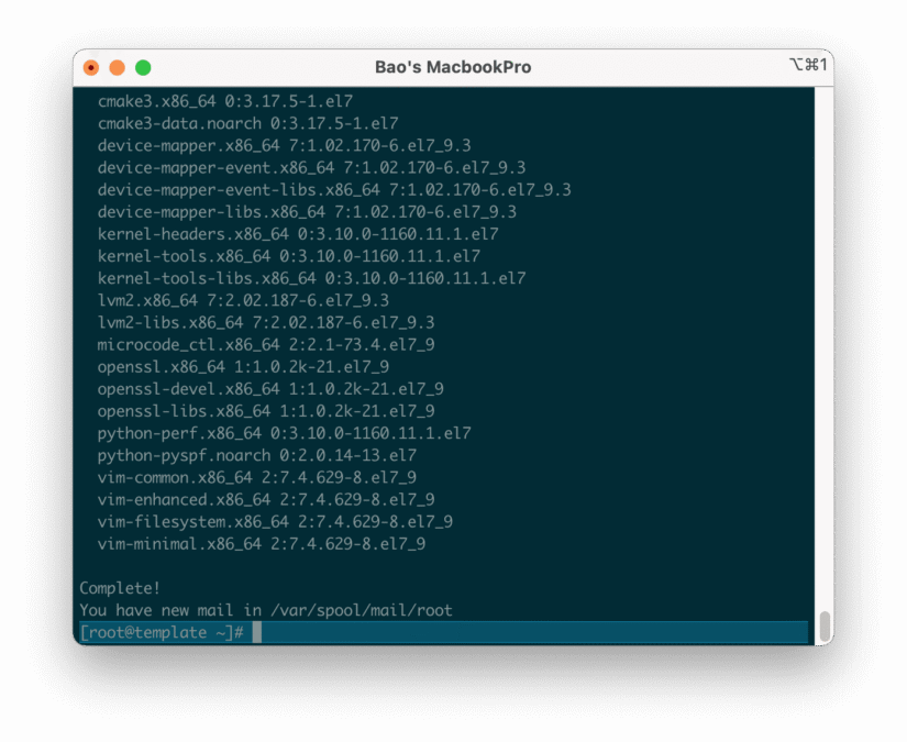 Dưới đây là hình ảnh sau khi thực hiện xong các lệnh cài đặt.