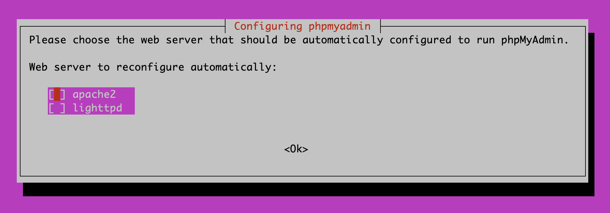 Tiếp đến bạn chọn apache2 và nhấn Enter