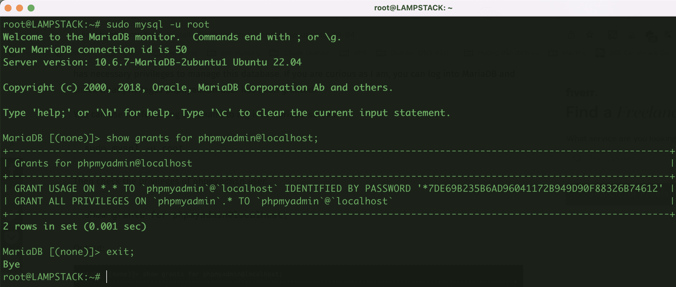 root@LAMPSTACK:~# mariadb --version