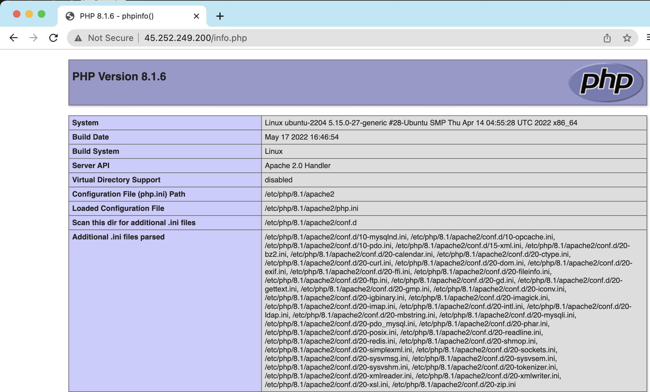 Server version: Apache/2.4.52 (Ubuntu)