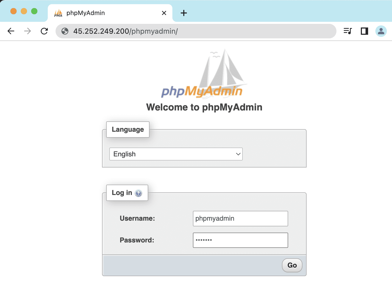 Sau khi cấu hình xong, các bạn vào trình duyệt và truy cập theo đường dẫn http://IP_Server/phpmyadmin để truy cập phpMyAdmin. Nếu thành công, giao diện sẽ như bên dưới, và các bạn sẽ sử dụng thông tin đã tạo ở phần Cài đặt phpMyAdmin đăng nhập vào.