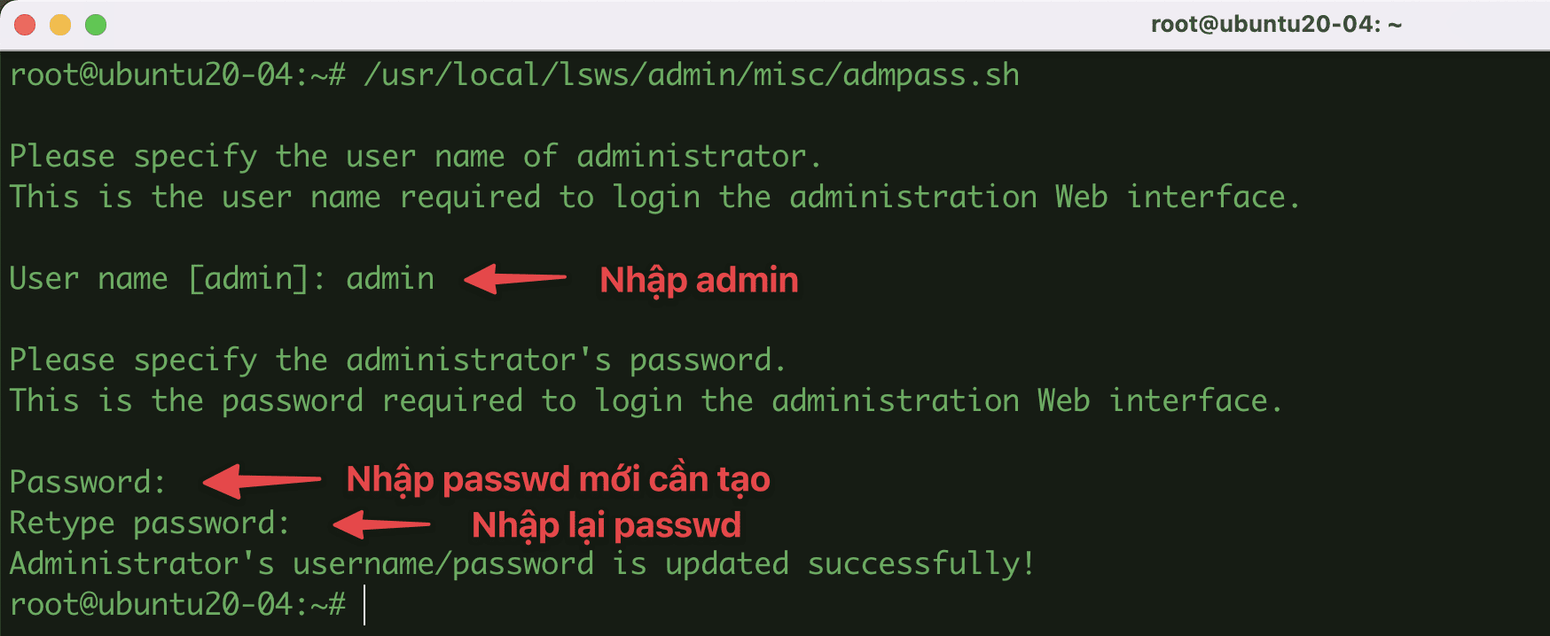 Re-enter new password: Nhập lại passwd root