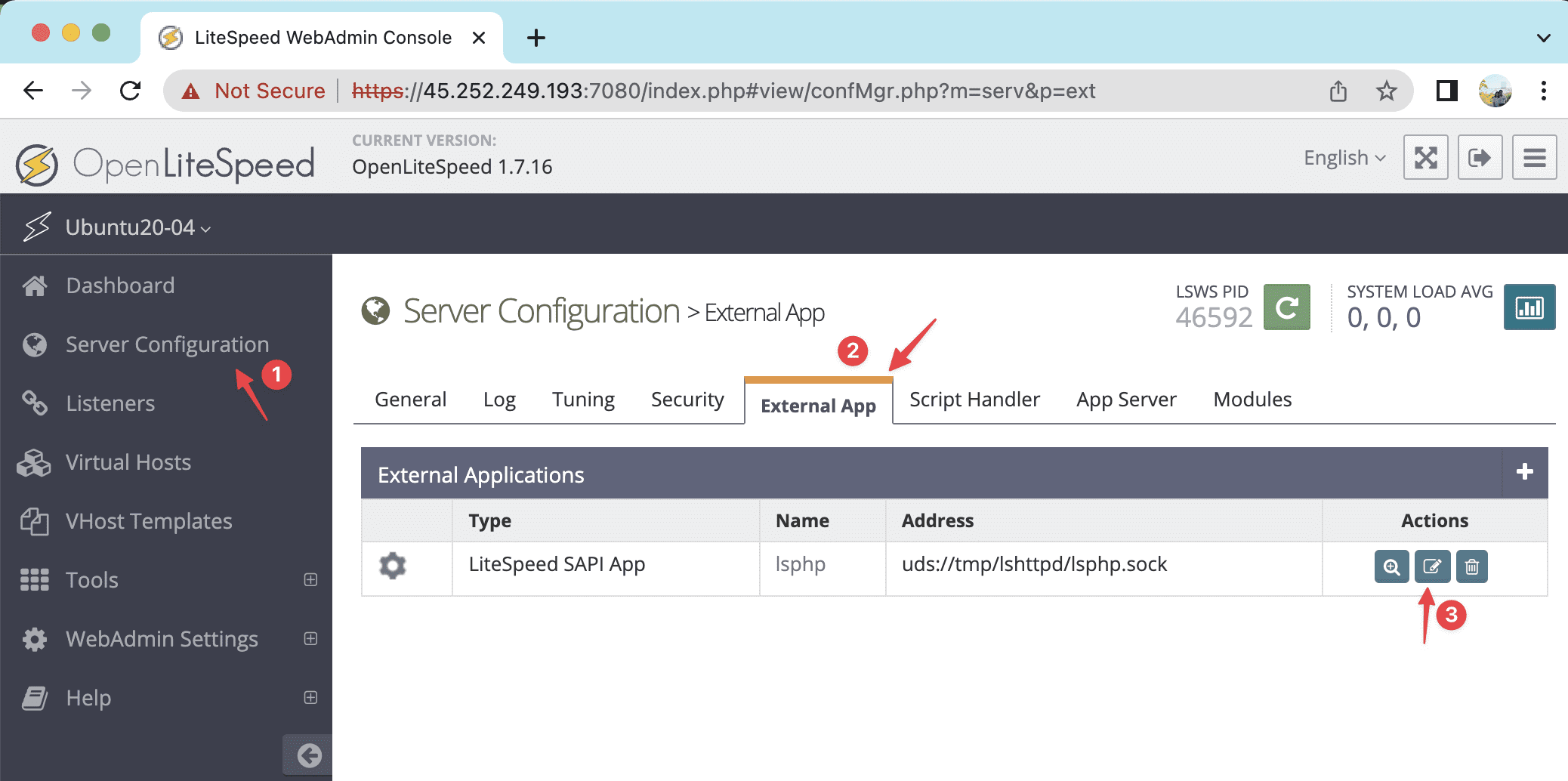 Tại giao diện GUI, bạn truy cập vào Server Configuration >> External App >> chọn chỉnh sửa