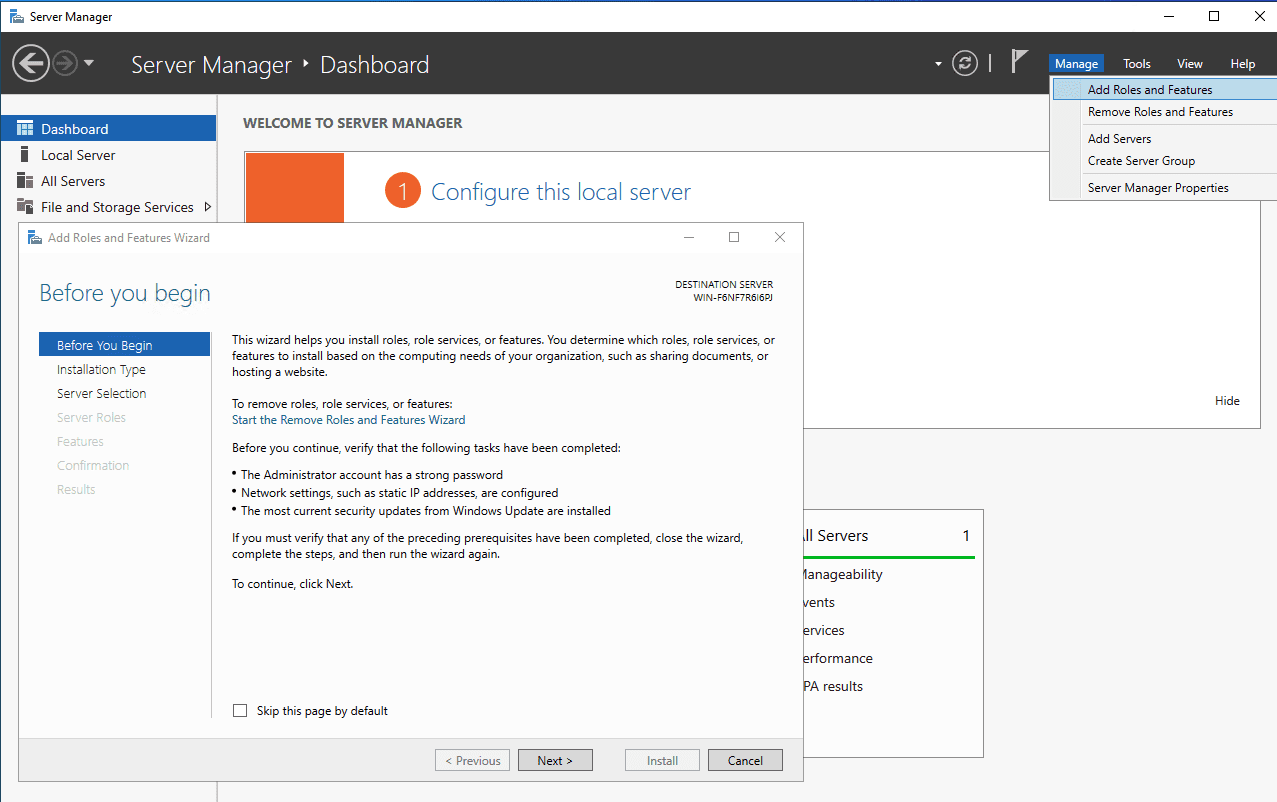 Sau đó chọn Add Roles and Features