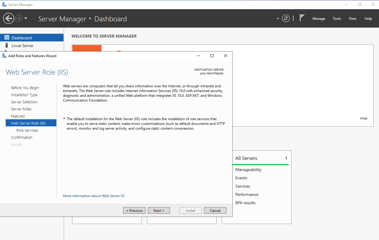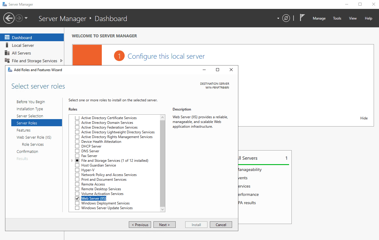 Chọn Web Server (IIS) => Chọn Next