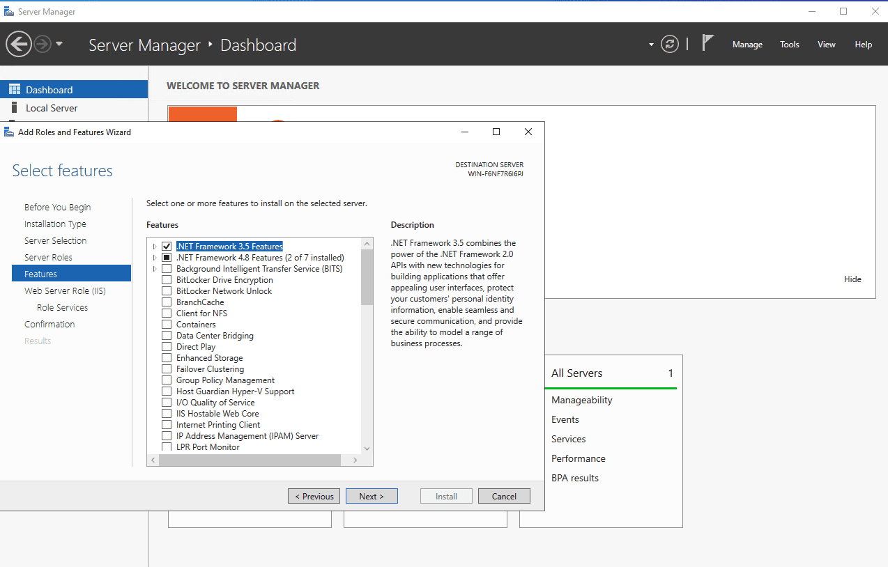 Chọn .NET Framework 3.5 Features => Chọn Next