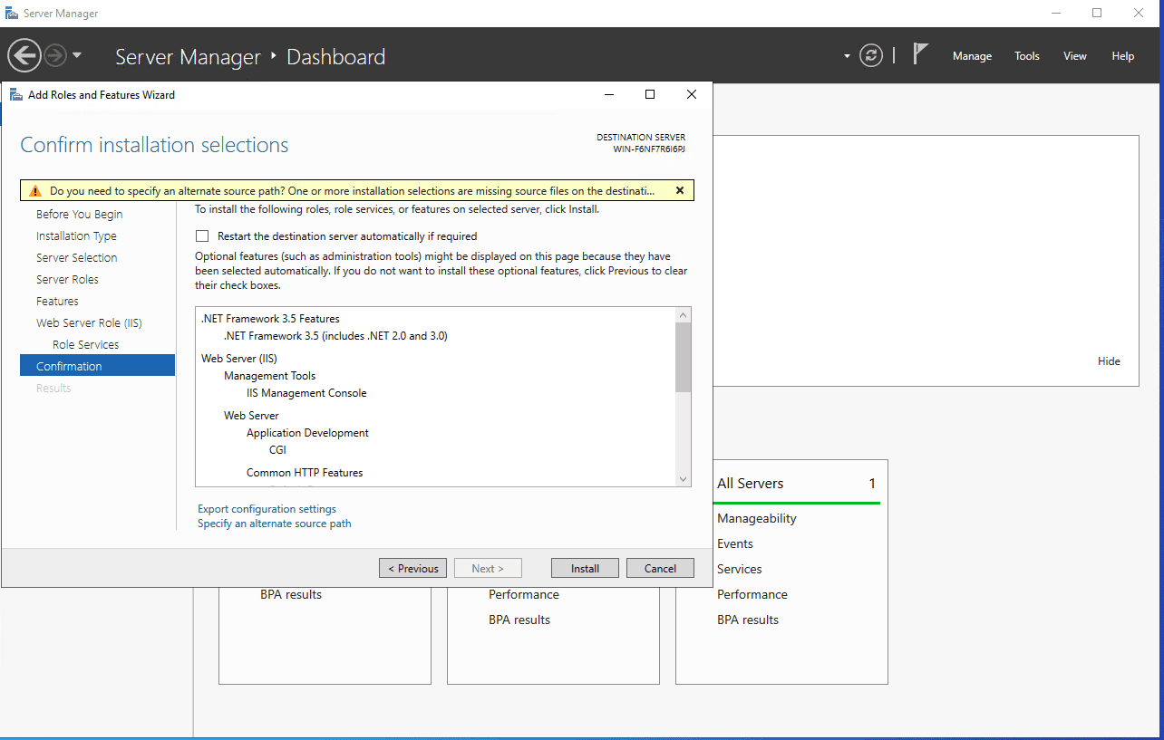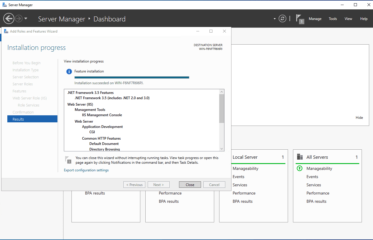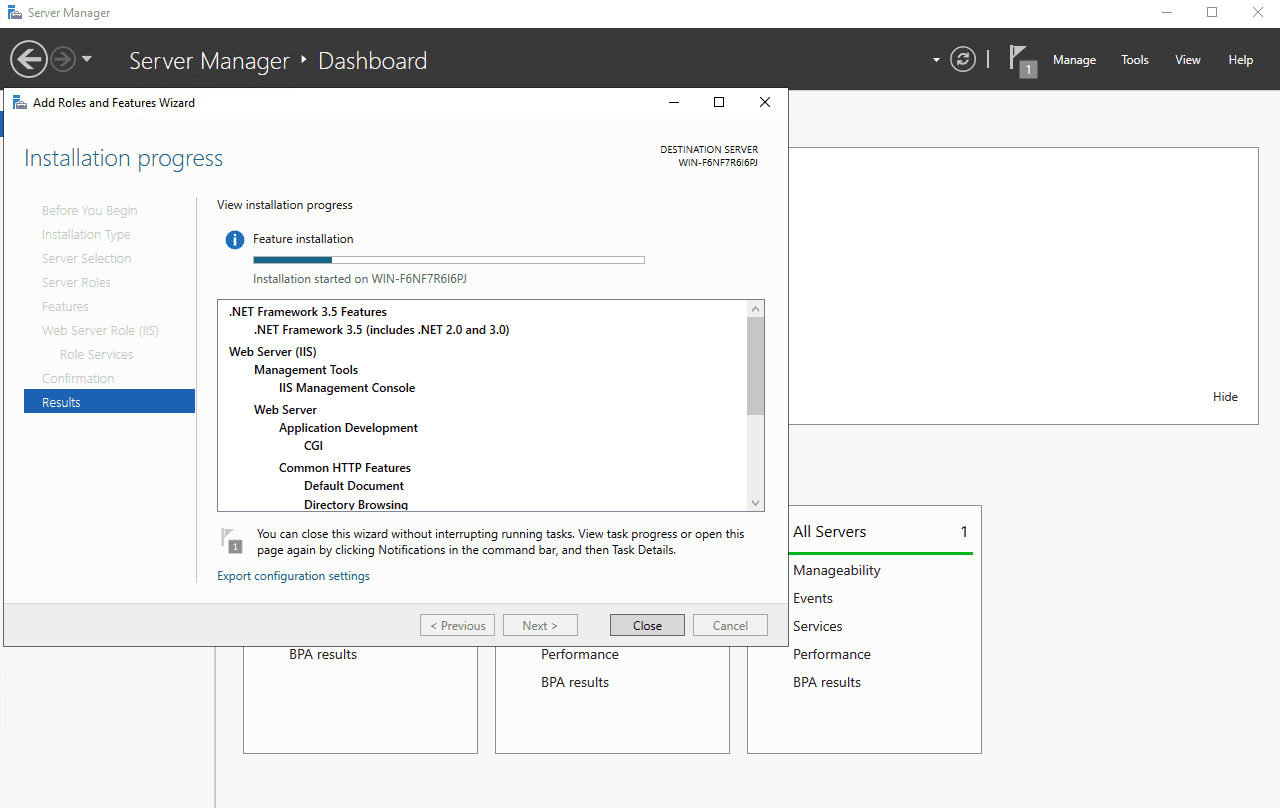 Tại đây bạn chờ ít phút để tiến trình cài đặt webserver IIS