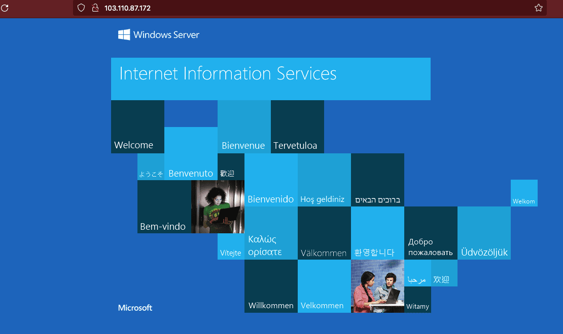 Sau đó bạn truy cập vào IP, nếu xuất hiện như ảnh bên dưới với dòng thông báo Internet Information Services là bạn đã cài thành công.