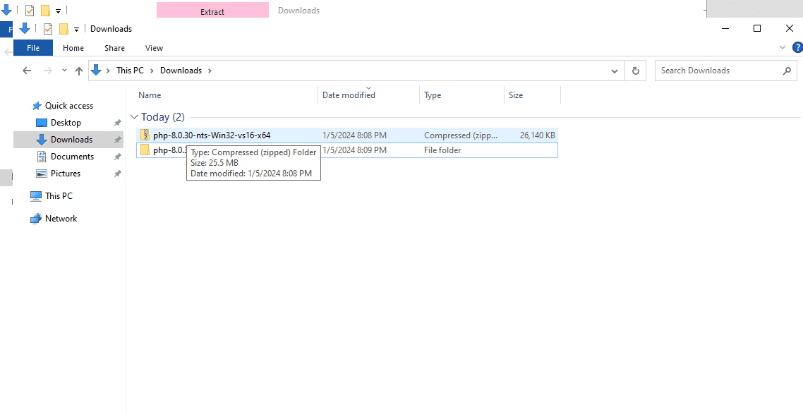 Download file zip về. Bạn hãy giải nén và đổi tên php-8.0.30-nts-Win32-vs16-x64 thành php-8.0.30 cho dễ nhớ.