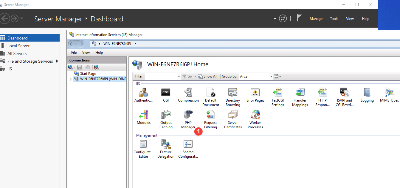 Sau khi cài đặt thành tắt hết mở lại phần quản lý IIS sẽ có thêm PHP Manager