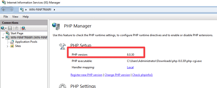 Thông tin PHP version 8.0.30 là đã thành công.