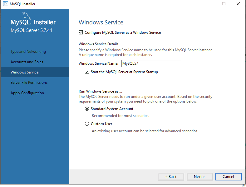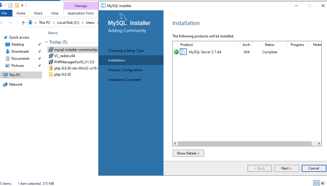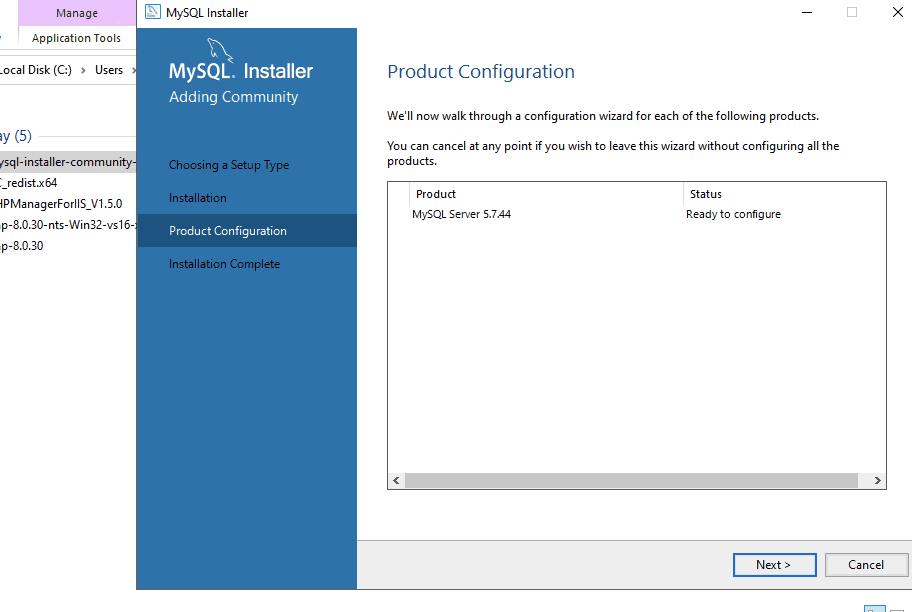 Tiến hành cài đặt MySQL 5.7