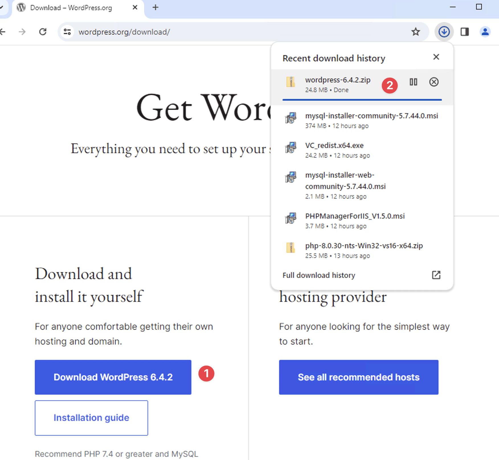 2. Tạo Website Và Tải mã Nguồn WordPress