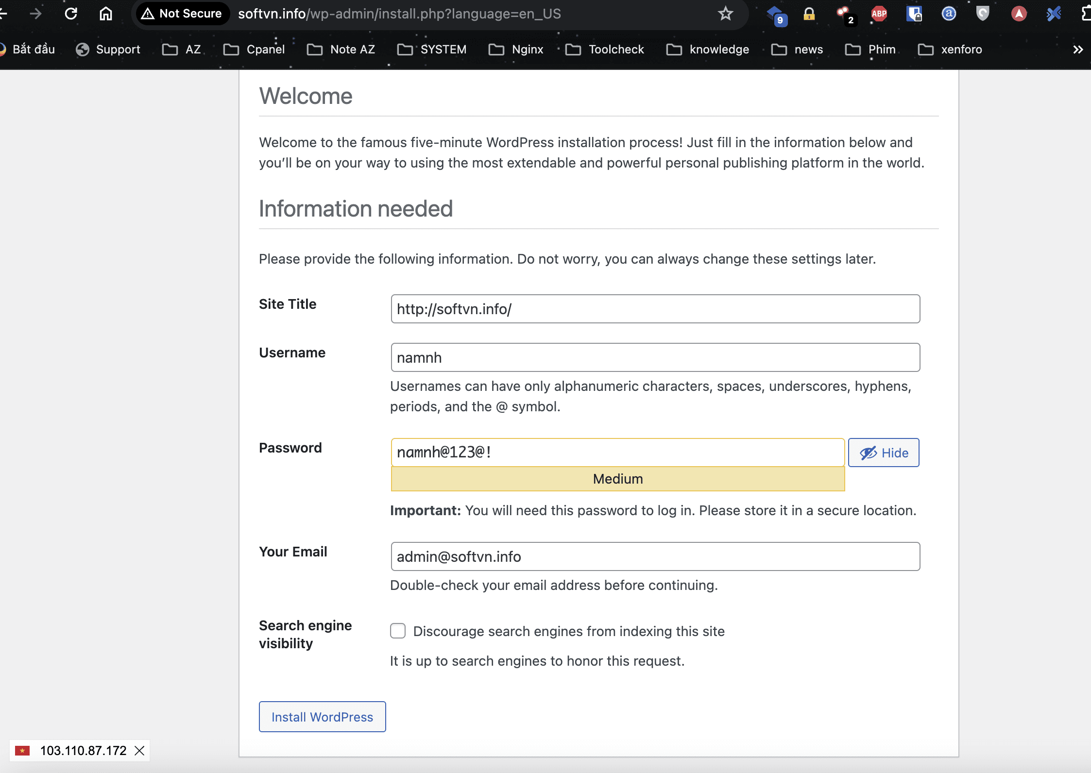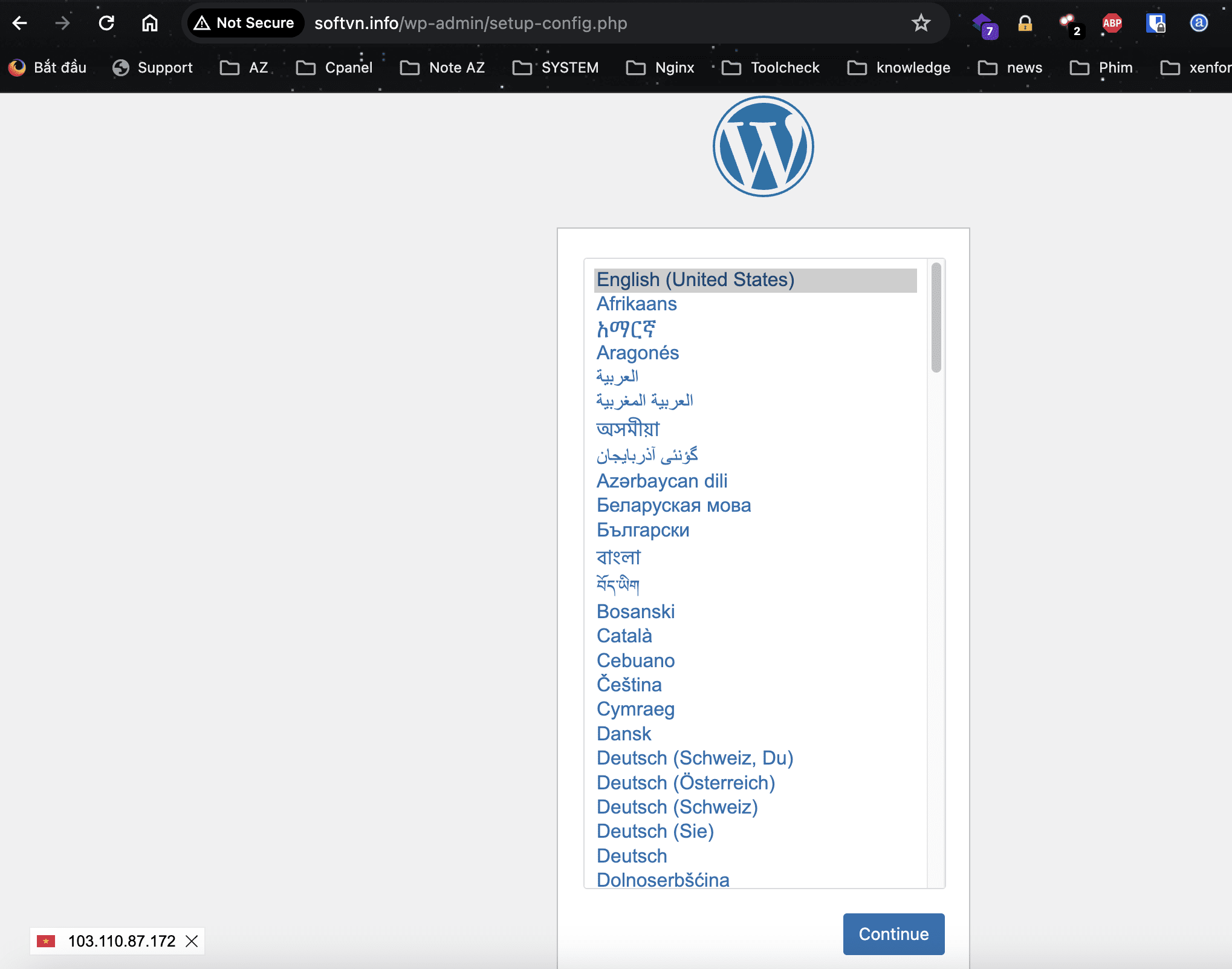 Tiến thành truy cập vào tên miền đã đặt để cài WordPress