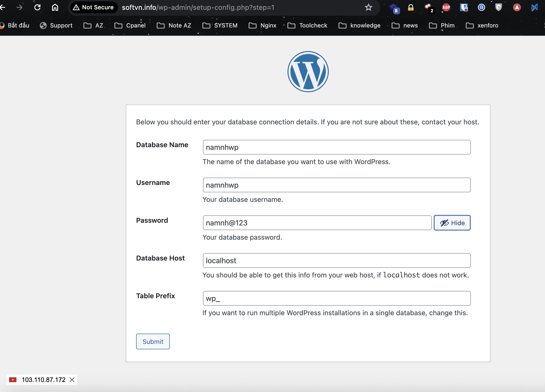 III. Tiến Hành Tạo Database Và Tạo Website WordPress.