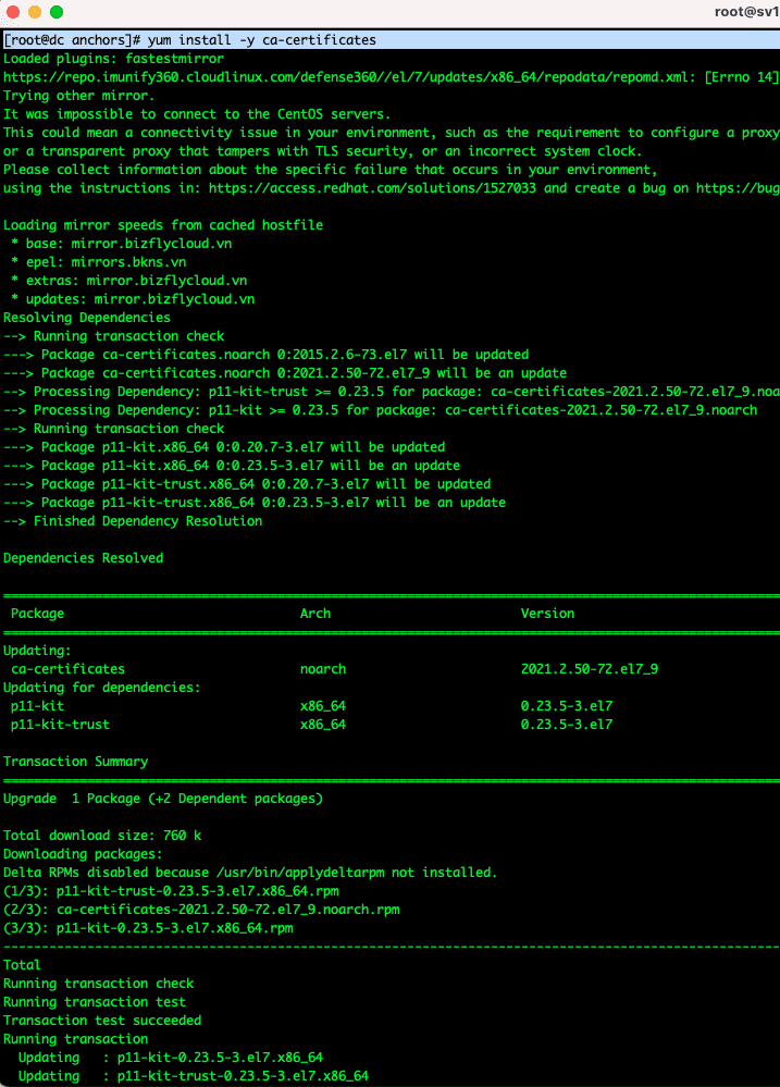 • Lệnh 4: lệnh cập nhật lại ca-trust