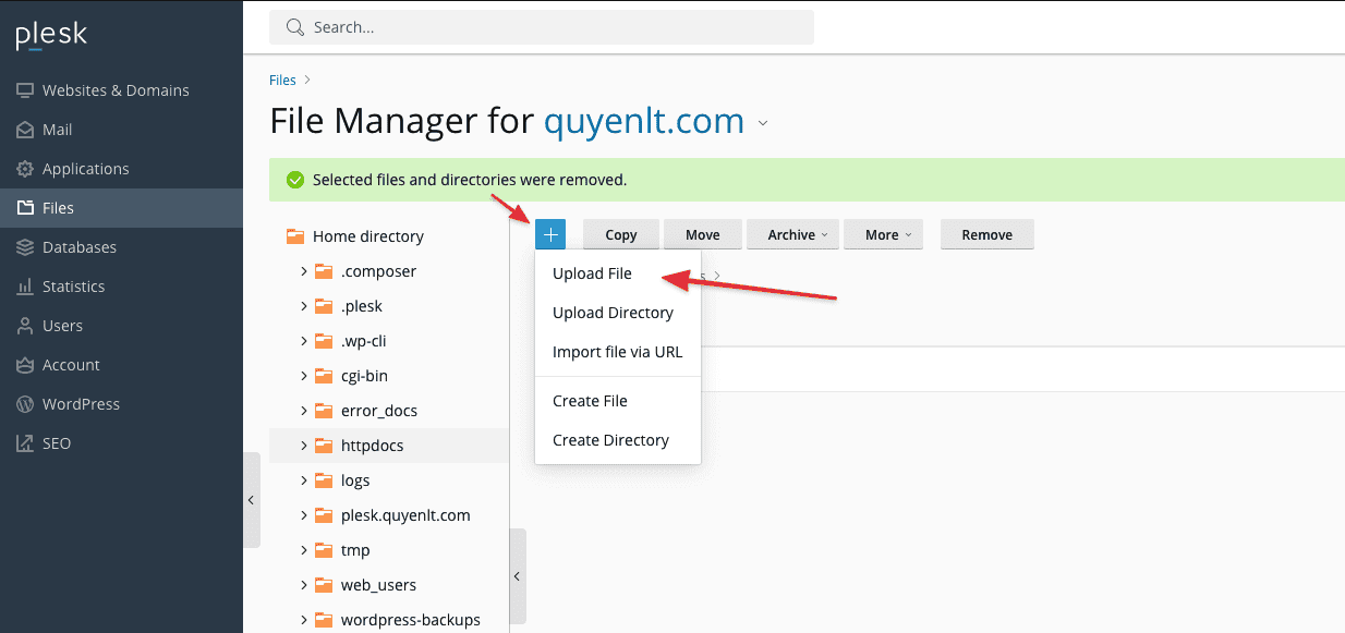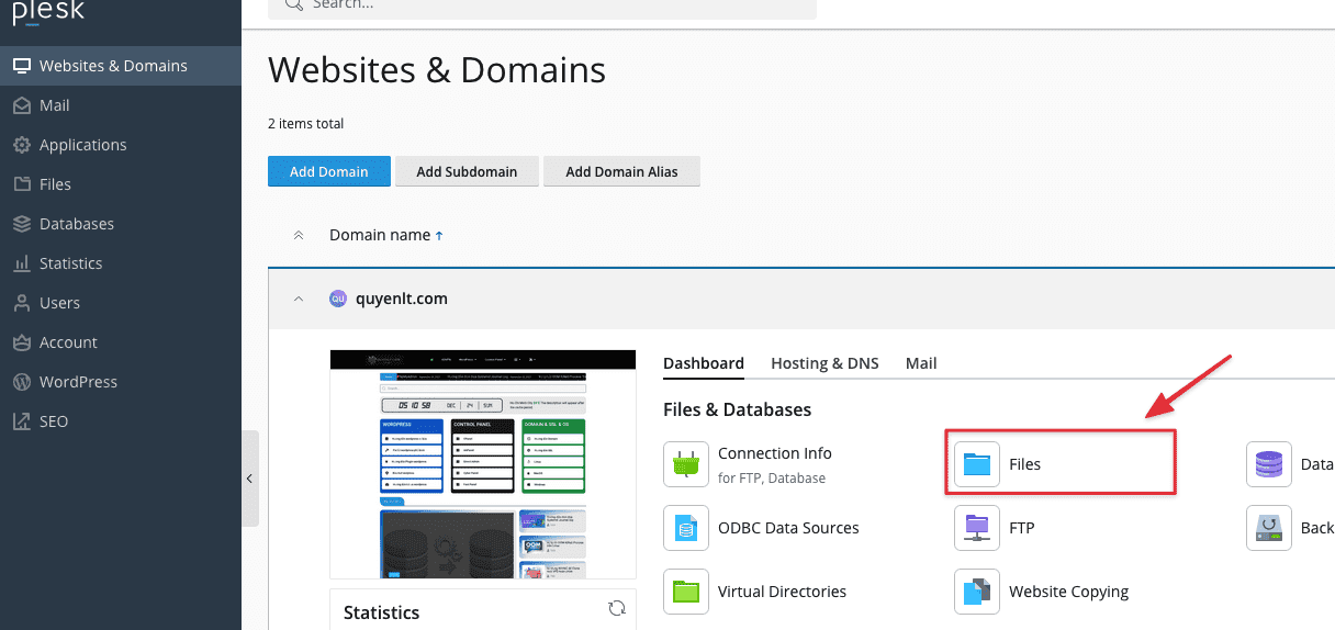 Ở giao diện Websites & Domain , tại domain cần upload dữ liệu bạn chọn vào mục “File