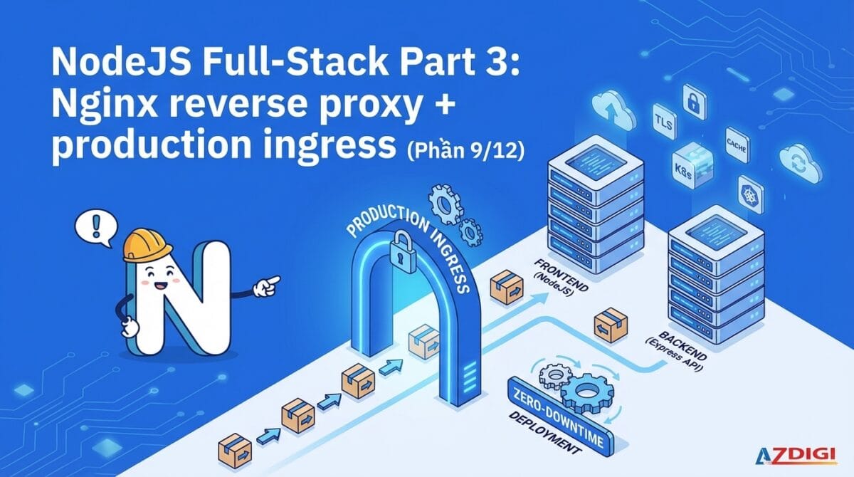 phần 8 của serie, mình đã tách frontend và backend thành các chart riêng, rồi ghép chúng lại bằng Helm theo kiểu đủ sạch để còn scale tiếp. Sang phần này, câu chuyện chuyển hẳn sang production: Nginx đứng ở đâu, ingress nên route thế nào, rollout ra sao để người dùng không thấy gián đoạn, và vì sao chỉ deploy được thôi thì vẫn chưa đủ.