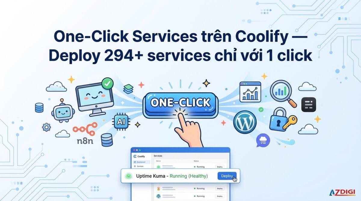 One-click services là killer feature của Coolify, cài monitoring, analytics, automation tools chỉ trong vài phút. Self-hosted = miễn phí + kiểm soát data. Bài tiếp: Multi-server và scaling.