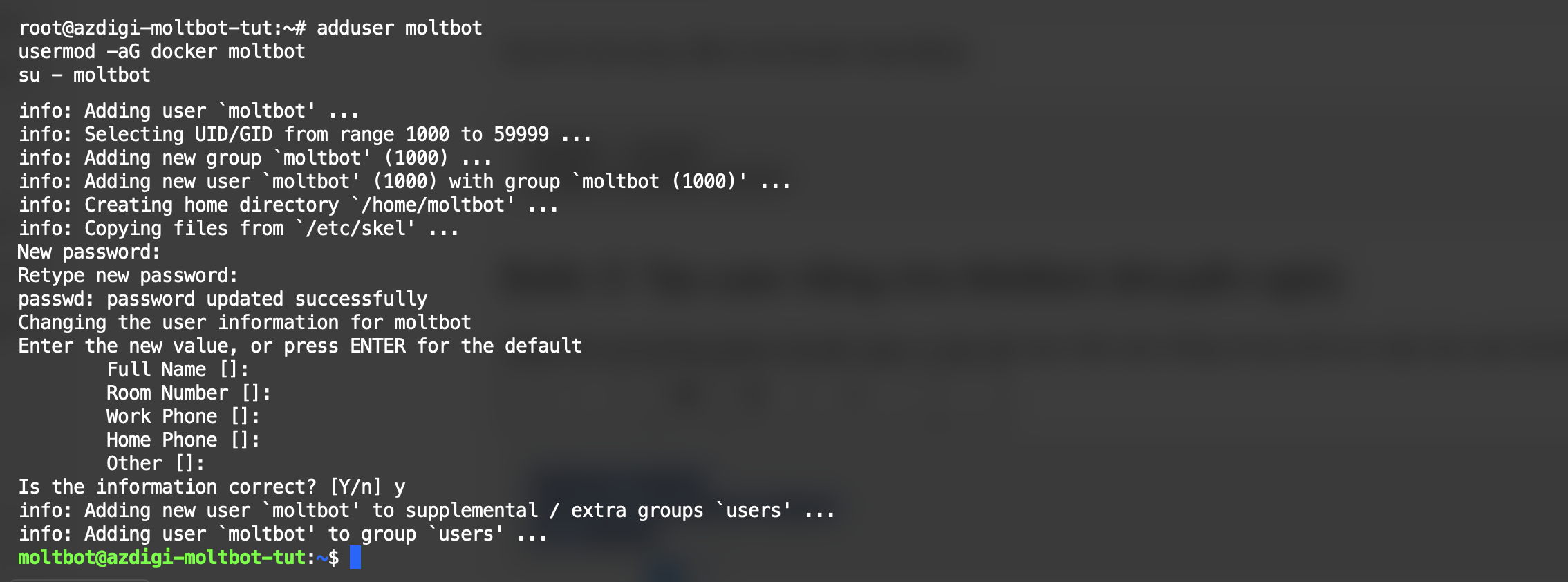 adduser openclaw