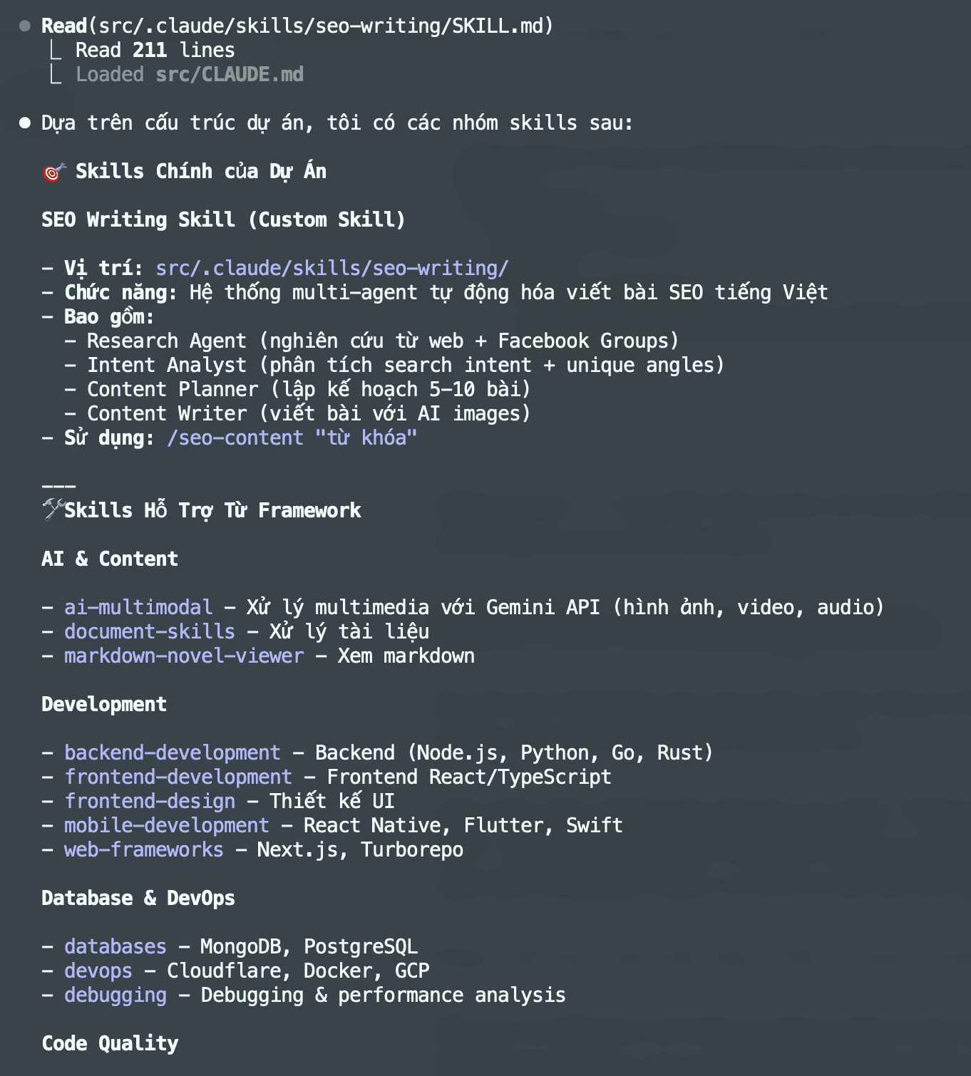 Mode này sẽ hiển thị thông tin chi tiết về quá trình load Skills, bao gồm cả những lỗi nếu có. Đây là cách tốt nhất để troubleshoot khi Skill không hoạt động như mong đợi.