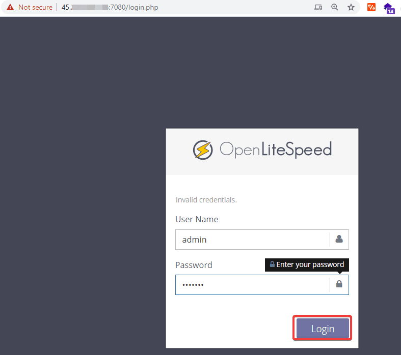 Sau khi cài đặt thành công, đường dẫn truy cập Web admin OpenLiteSpeed măc định sẽ là: https://IPVPS:7080/
