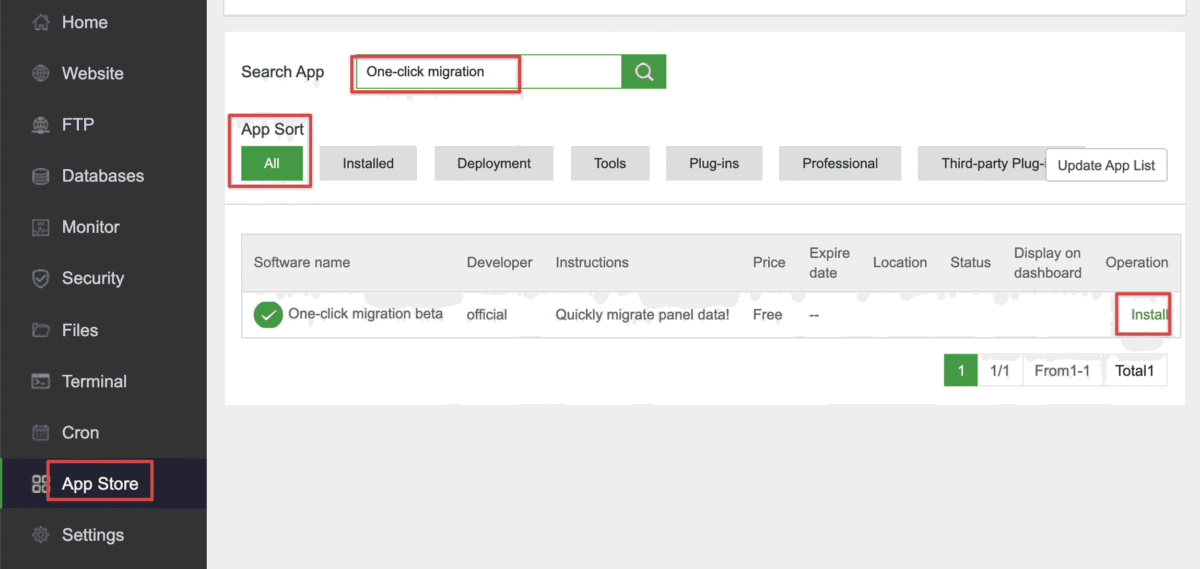 Trên AAPANEL của 2 VPS bạn hãy cài đặt một công cụ có tên là One-click migration beta. Đây là công cụ sẽ thực hiện Migrate dữ liệu của VPS với nhau.