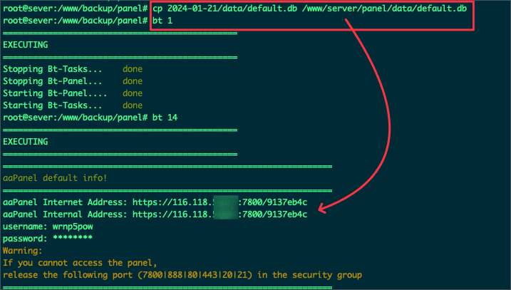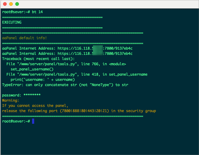aaPanel Internet Address: https://116.118.x.x:7800/9137eb4c
