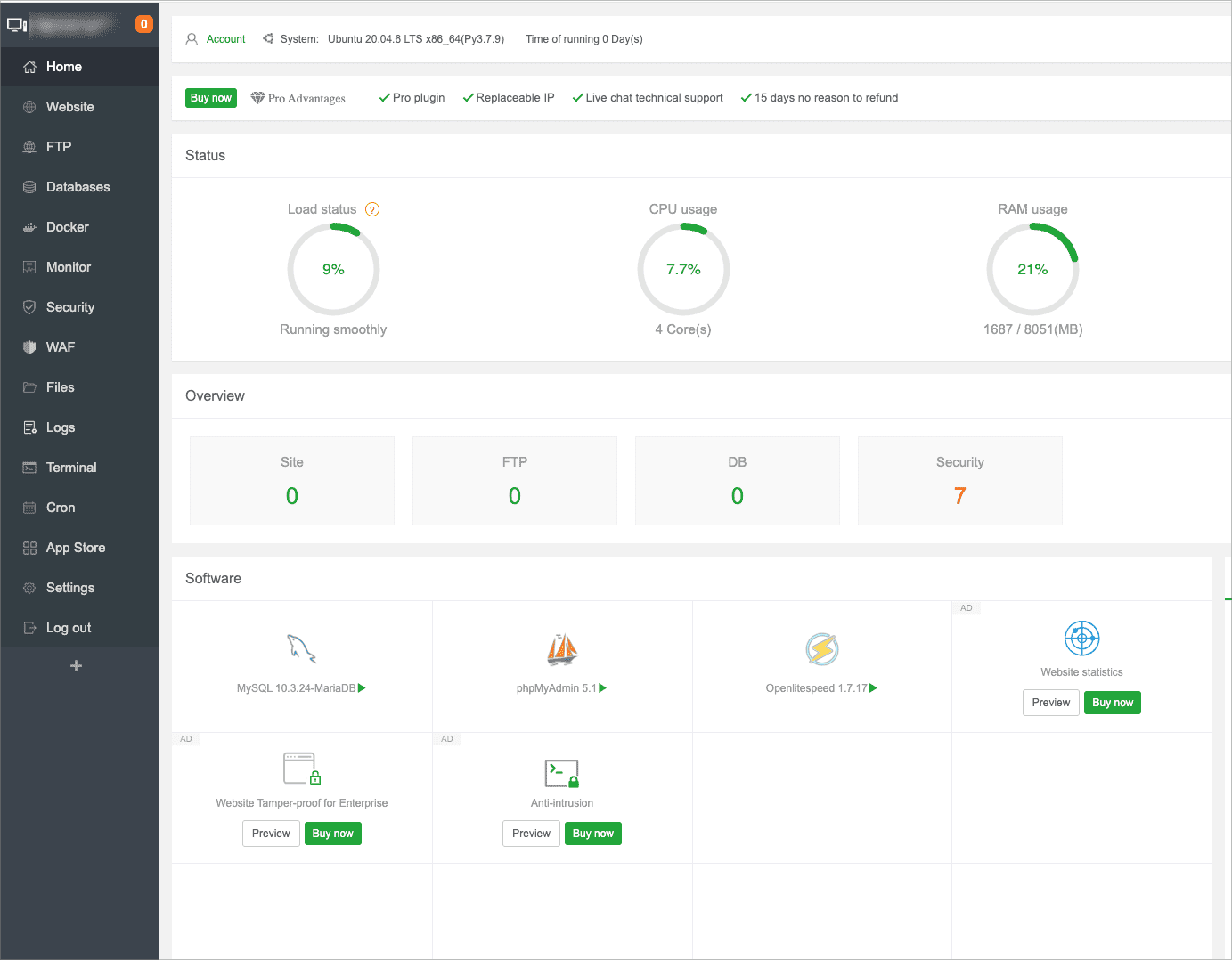Và kết quả đã có thể truy cập vào được AAPANEL.