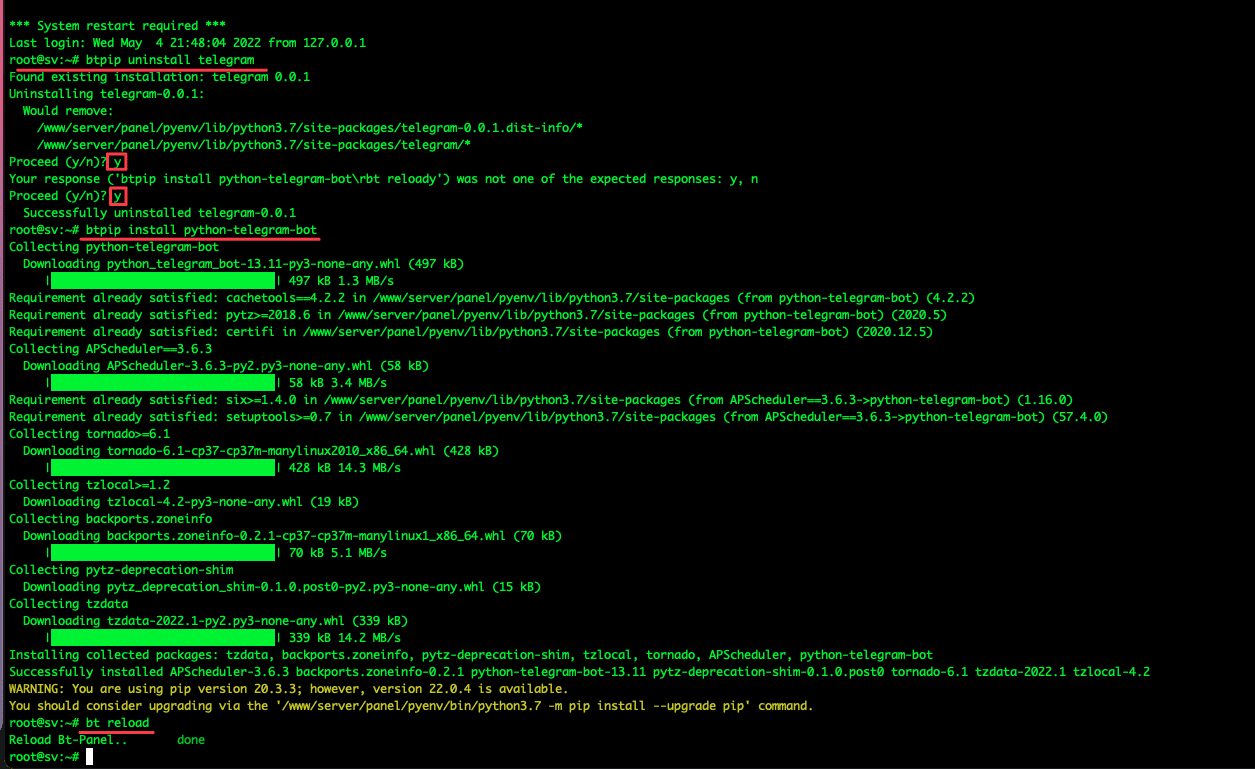 btpip uninstall telegram