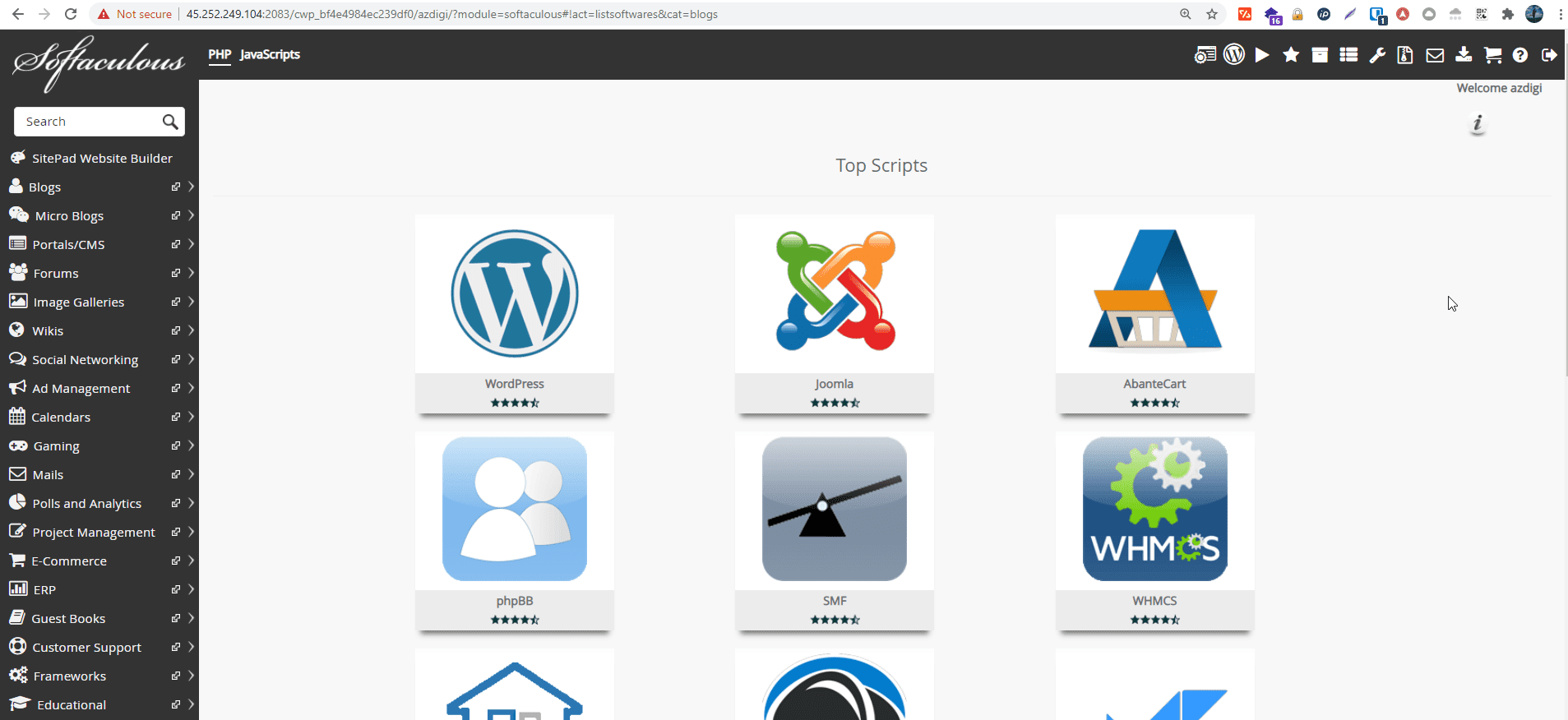 Tại giao diện User, bạn truy cập Script Installers => Softaculous