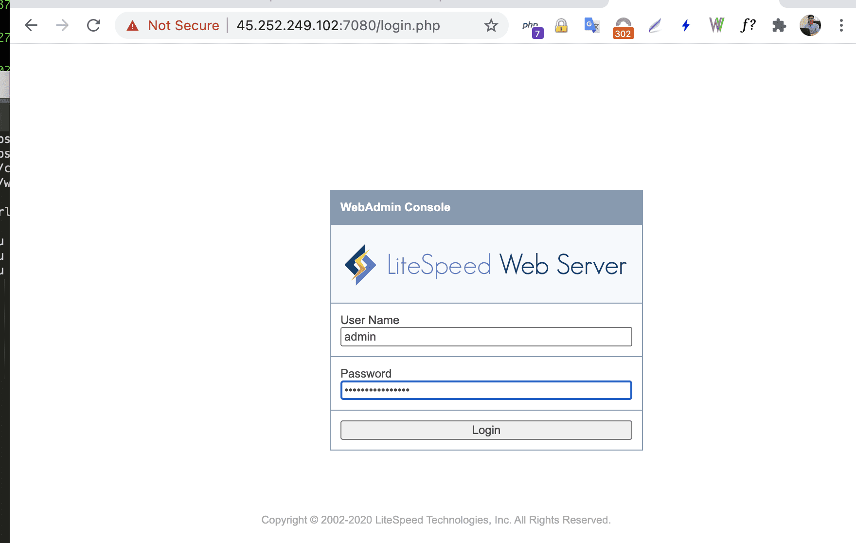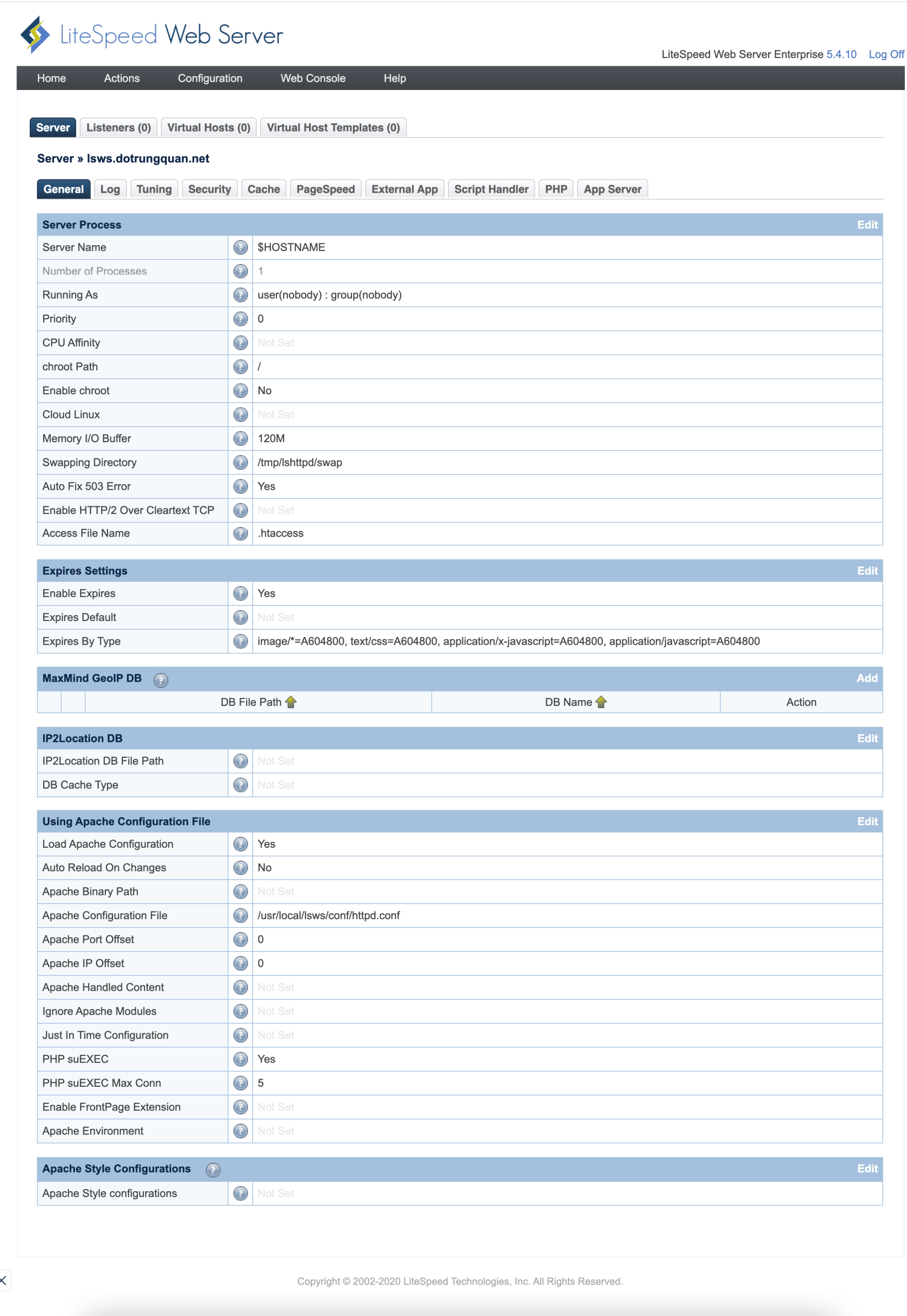 Sau đây là giao diện admin của LiteSpeed Web Server.