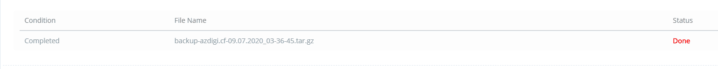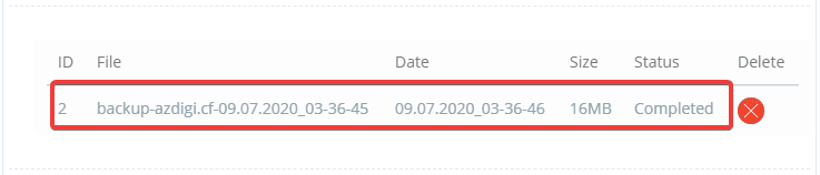 Quá trinh tạo file backup nhanh hay chậm phụ thuộc vào phần dữ liệu của website mà bạn đang backup, khi tạo file backup hoàn tất bạn sẽ nhận được thông báo Completed. Tại đây sẽ được hiển thị đầy đủ các thông tin như: Tên file backup , thời gian file backup được tạo, dung lượng file backup để bạn có thể dễ dàng kiểm tra.