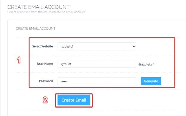 - Select Website: Chọn tên website mà bạn muốn tạo email theo đuôi website đó.