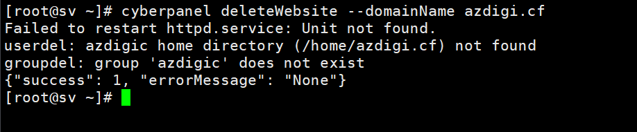 cyberpanel deleteWebsite --domainName azdigi.cf