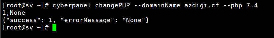 cyberpanel changePHP --domainName azdigi.cf --php 7.4