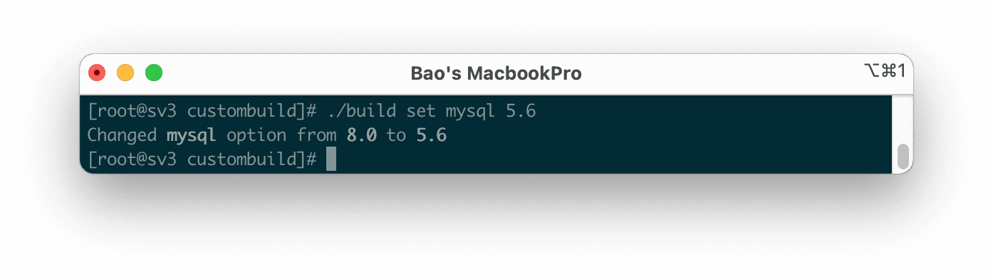- Lệnh 5: Điều chỉnh cấu hình phiên bản MySQL lên bản 5.6 (Bạn có thể thay đổi thành phiên bản khác nếu muốn).
