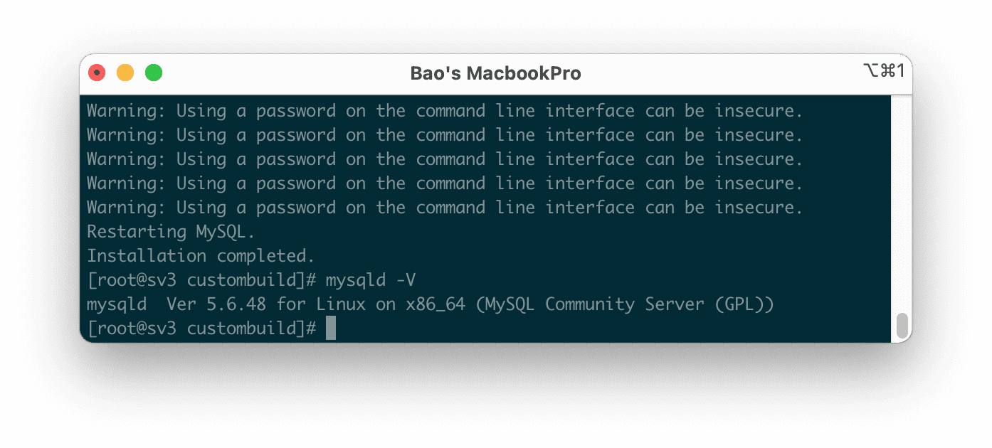 Như vậy là VPS của mình đã được hạ cấp MySQL từ bản 8.0.20 về bản MySQL 5.6.48.