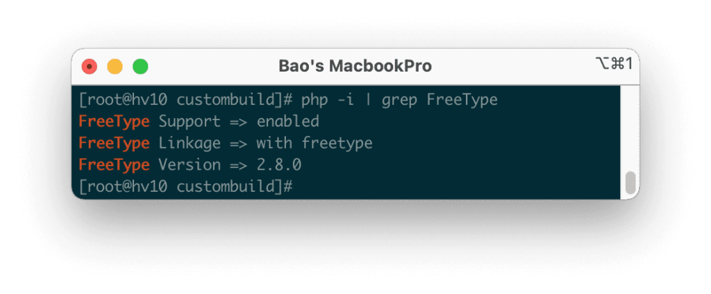 Sau khi bạn đã cập nhật toàn bộ phiên bản PHP trên máy chủ với lệnh 4 thì có thể kiểm tra lại phiên bản FreeType với lệnh sau: